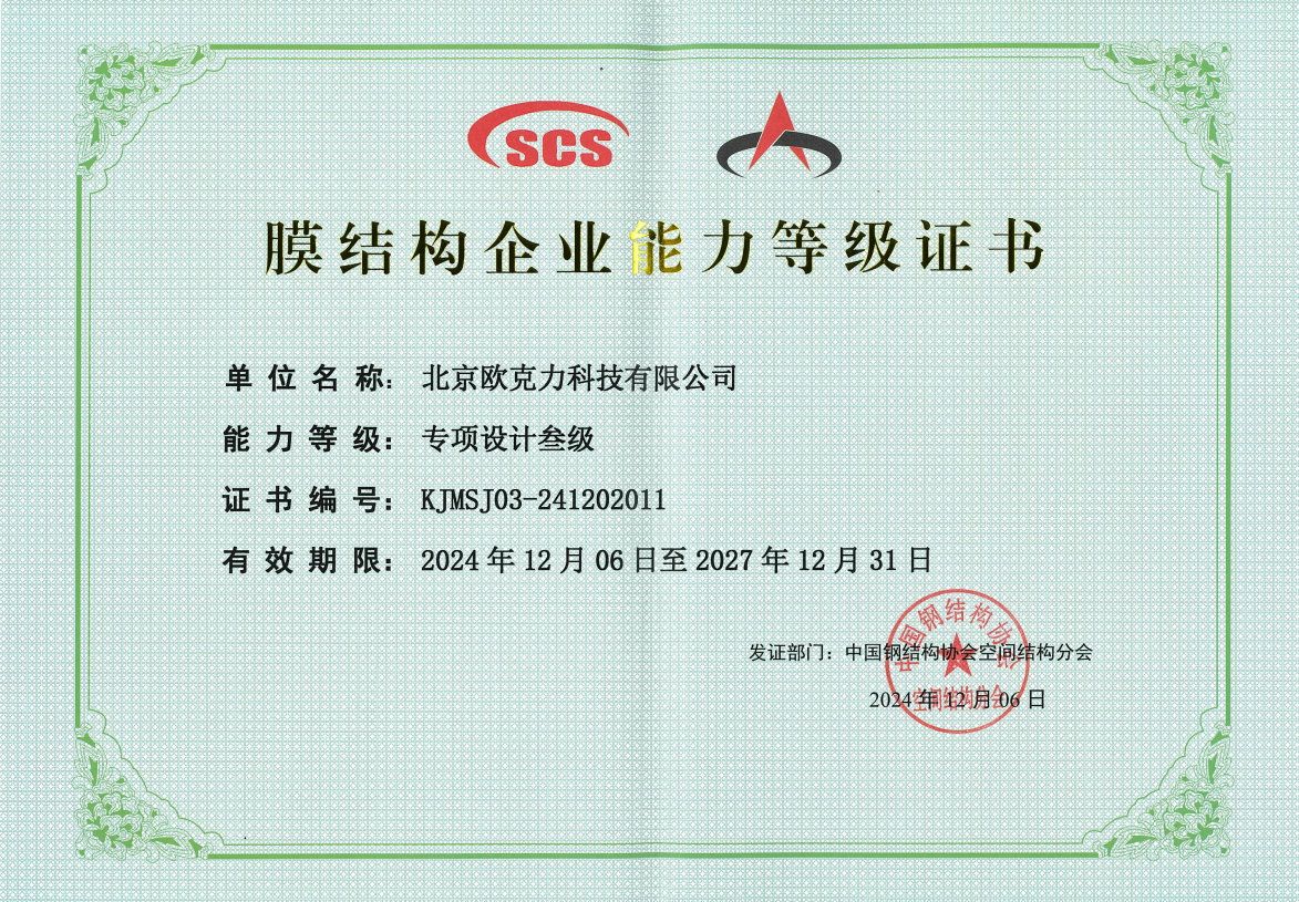 北京歐克力科技有限公司,成立于2009年,北京市通州區(qū)國(guó)家高新技術(shù)企業(yè),中國(guó)鋼結(jié)構(gòu)協(xié)會(huì)空間結(jié)構(gòu)分會(huì)會(huì)員單位,歐克力氣膜一直專(zhuān)注于研究、設(shè)計(jì)、生產(chǎn)新型氣承式膜結(jié)構(gòu)建筑及基坑氣膜租賃定制服務(wù)。深諳智能氣膜之道,高度整合行業(yè)資源,致力于為客戶(hù)提供優(yōu)質(zhì)高效的智能模塊化氣膜建筑,產(chǎn)品廣泛應(yīng)用于建筑工地、大型場(chǎng)館、體育.工業(yè)、物流、環(huán)保、旅游、考古、農(nóng)業(yè)、水利、生物化學(xué)石油化工、軍事等領(lǐng)域。 公司奉行技術(shù)驅(qū)動(dòng)的宗旨,持續(xù)加大科技研發(fā)投入。在氣膜建筑行業(yè)內(nèi)率先推出智能模塊化基坑氣膜租賃定制,為客戶(hù)降低初始投資成本,減少后期維護(hù)與存儲(chǔ)壓力,還開(kāi)發(fā)了基坑氣膜施工安全監(jiān)測(cè)與預(yù)警平臺(tái),基坑氣膜現(xiàn)場(chǎng)數(shù)據(jù)采集與分析平臺(tái),氣膜建筑設(shè)計(jì)與施工管理系統(tǒng)等多項(xiàng)發(fā)明專(zhuān)利。秉承"精于氣膜,模塊智造,服務(wù)至上"的經(jīng)營(yíng)理念,堅(jiān)持以一流的專(zhuān)業(yè)水準(zhǔn),一流的敬業(yè)精神,一流的服務(wù)意識(shí)為客戶(hù)提供優(yōu)化的氣膜建筑系統(tǒng)解決方案。