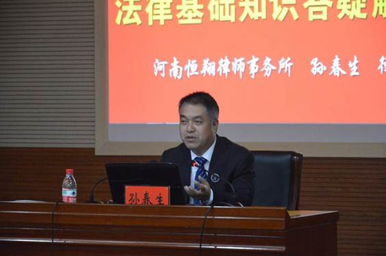 孫春生律師結合官兵工作實際,向他們普及了法律基本知識,介紹刑法、行政訴訟、民事訴訟法律基礎常識,重點講解生活中較為常見的民事法律糾紛及如何打官司等,講課與實際案例相結合,深入淺出,內(nèi)容貼近實際,語言通俗易懂,受到廣大官兵的熱烈歡迎和一致好評。